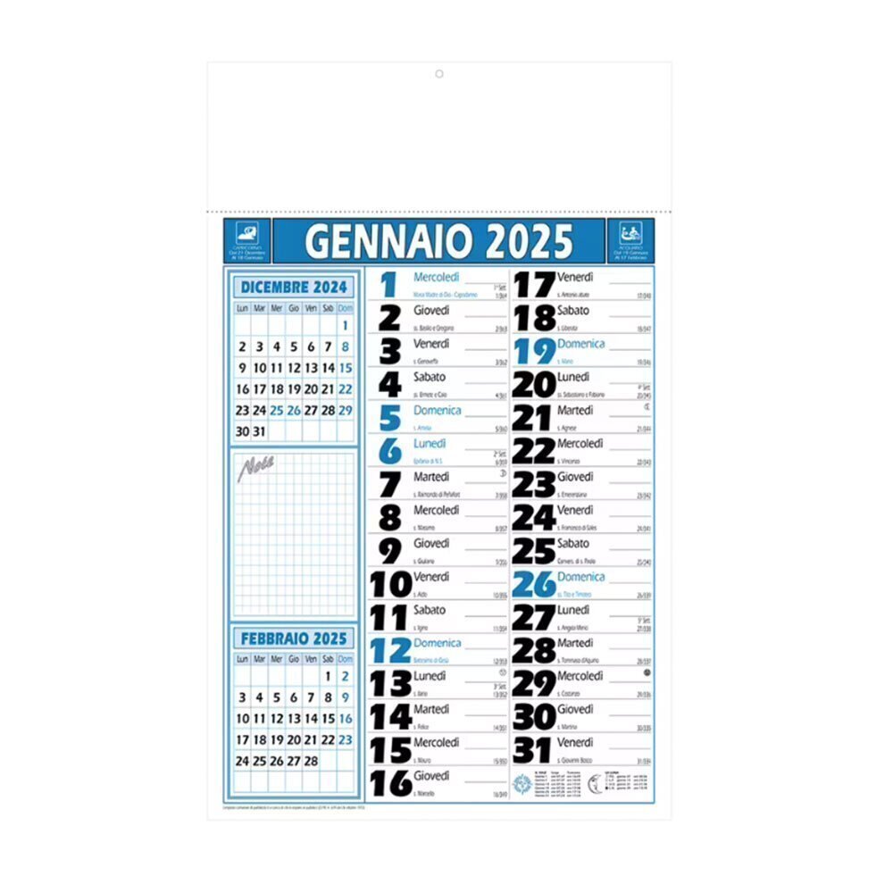 Calendario 2025 da muro mensile, 12 fogli, su carta patinata, termosaldato