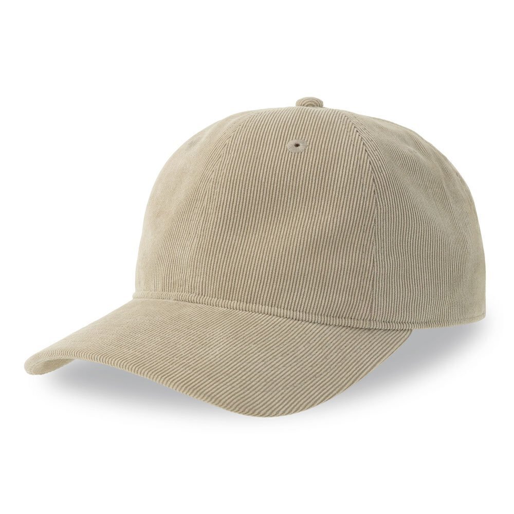 Modello baseball, destrutturato a 6 pannelli in velluto 21 Wales di poliestere riciclato, con visiera mid e chiusura con fibbia in metallo con foro. Look vintage per utilizzo cittadino.