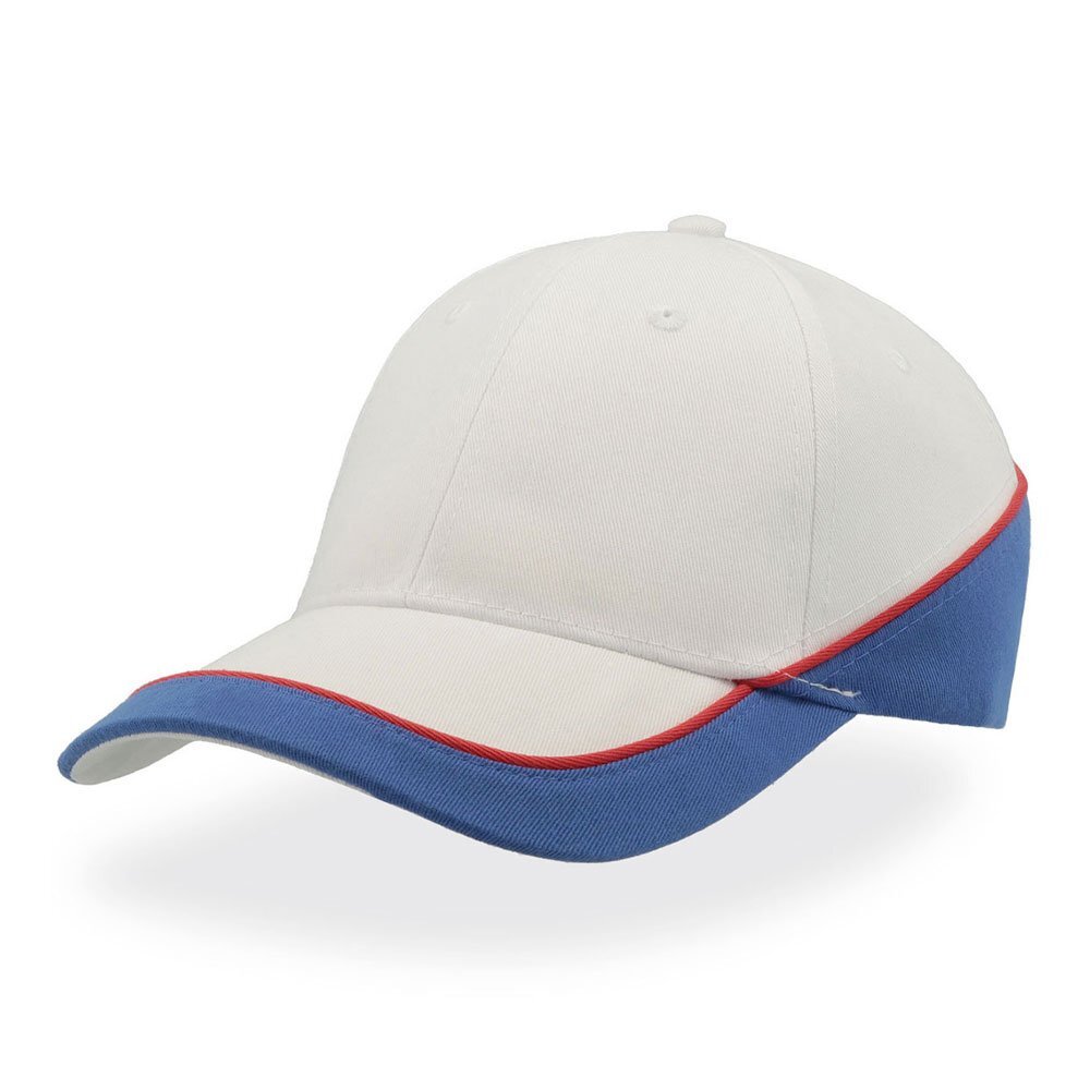 Cappello tipo baseball. Linea aereodinamica. Due colori abbinati con profilo a contrasto. Chiusura a strappo con cinturino in tessuto. 65% Polyestere 35% cotone