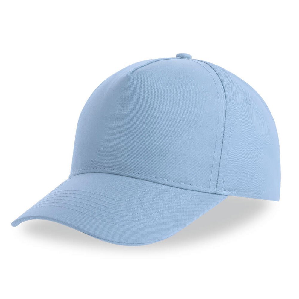 Classico cappellino da baseball strutturato a 5 pannelli realizzato in 100% poliestere riciclato certificato. Cuciture in tinta, visiera curva e 4 occhielli.