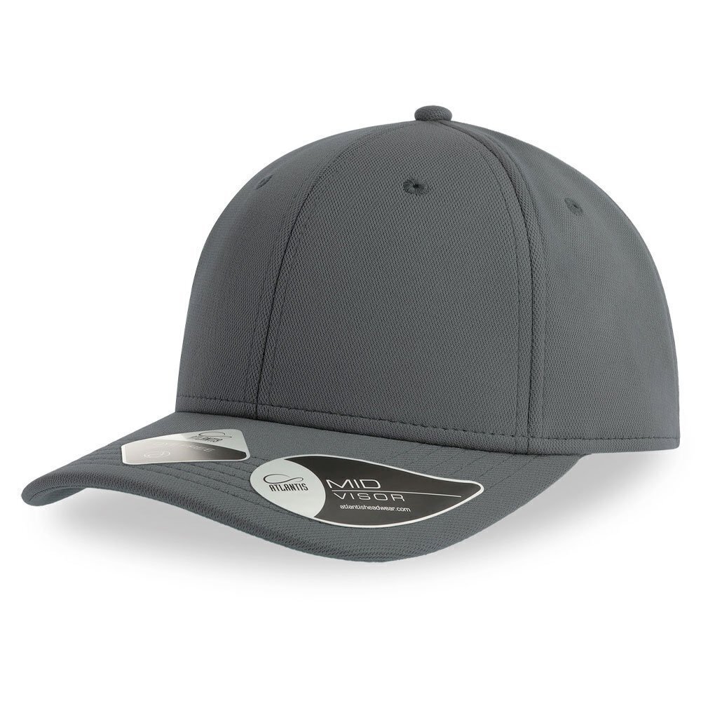 Berretto strutturato a 6 pannelli realizzato in poliestere riciclato tinto con tecnica DopeDyeing, cioè con trasferimento a caldo senza immersione in acqua. Cuciture in tinta, visiera media e 6 occhielli. Chiusura a strappo di alta qualità.