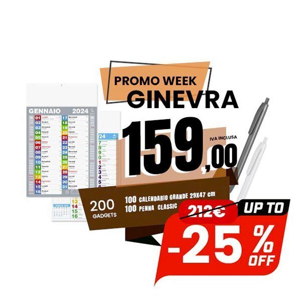 Scopri la nostra esclusiva Promo Week dedicata ai gadget personalizzati: una raccolta di articoli promozionali selezionati per aziende, eventi, fiere e iniziative pubblicitarie. Ogni prodotto è proposto con stampa inclusa, trasporto gratuito e IVA compresa, per offrire un servizio completo e trasparente.